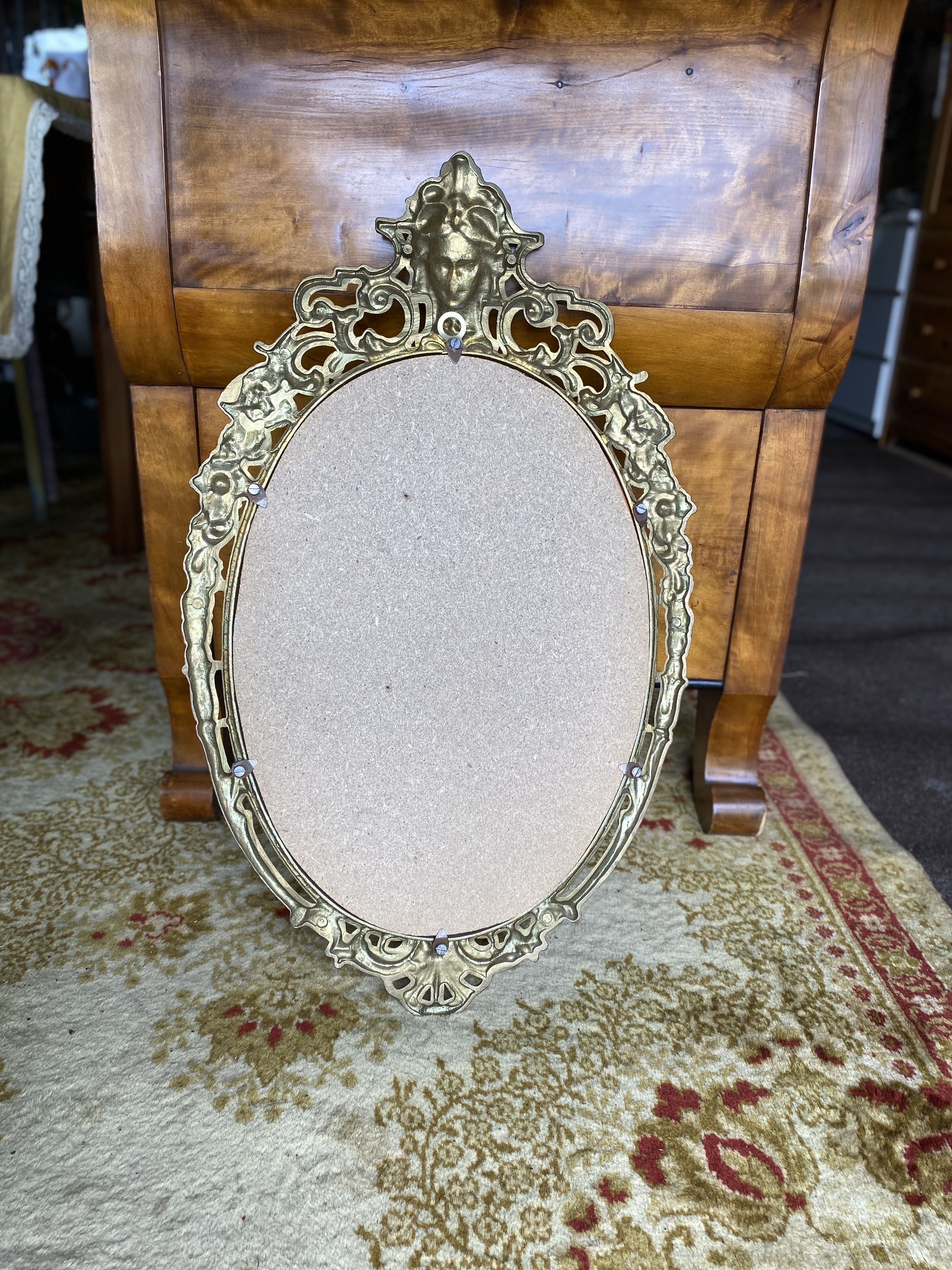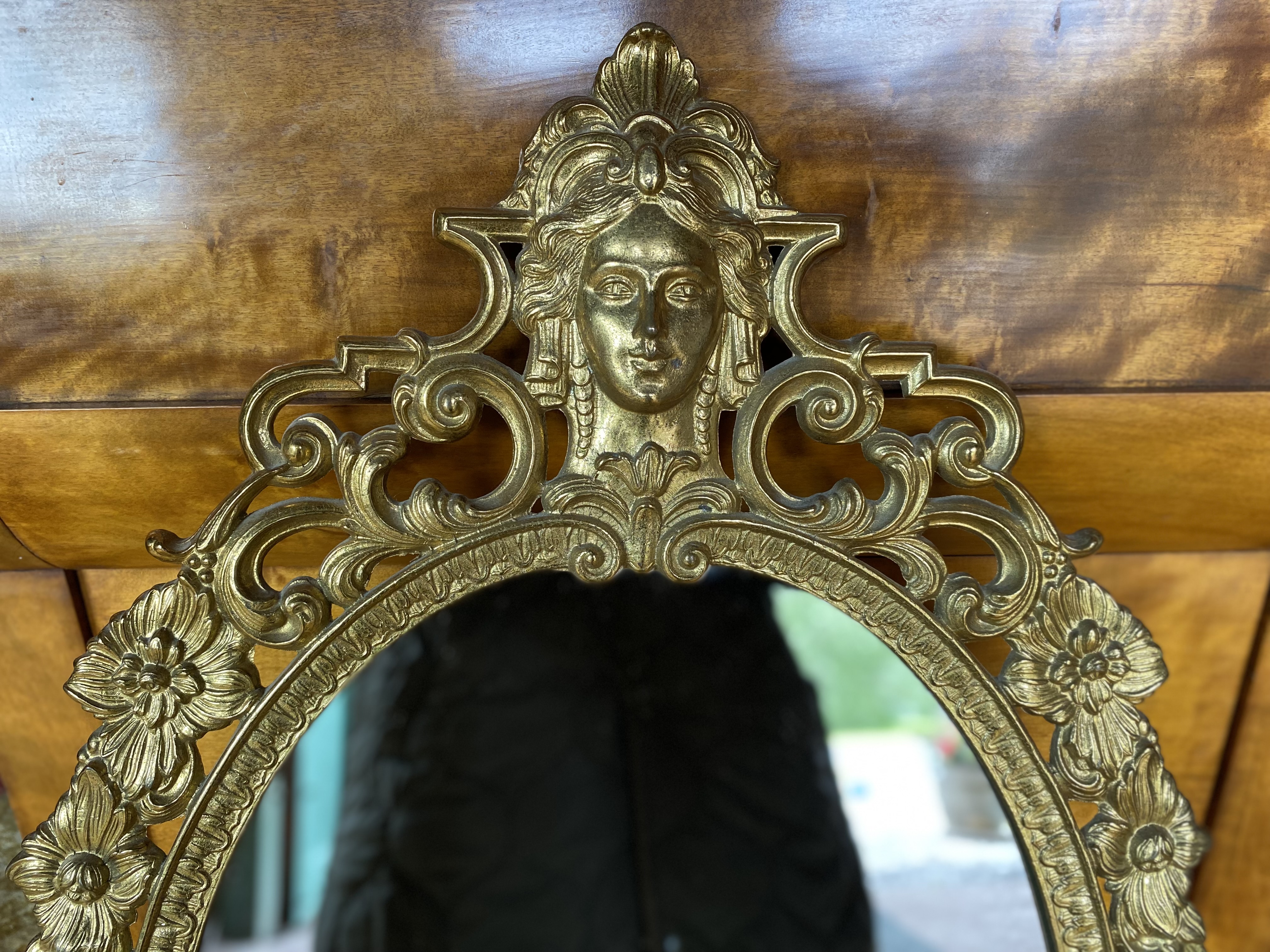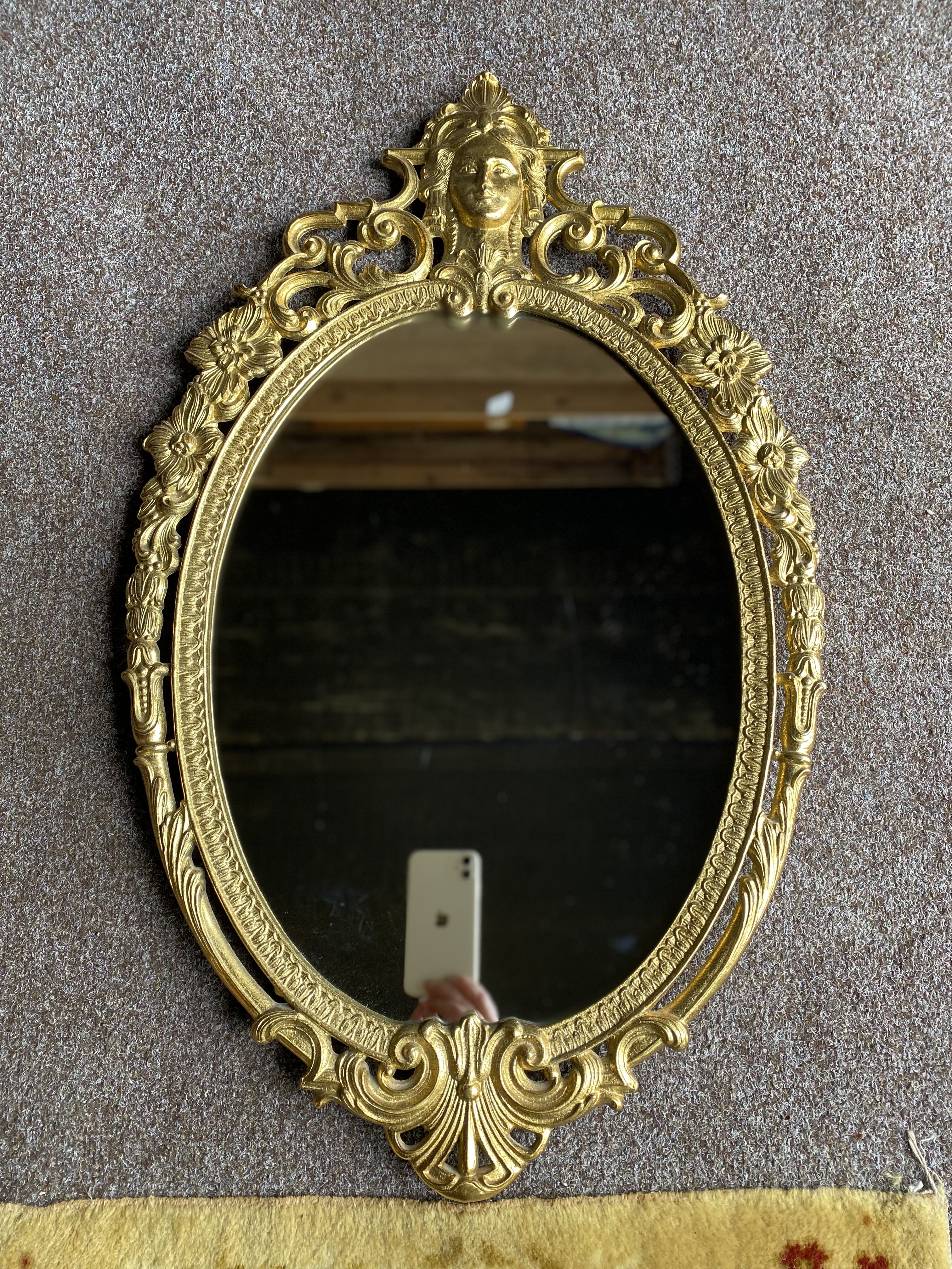 Antiikstiilis Ovaalne Seinapeegel – Messingraam ja Naisfiguuri Ornament