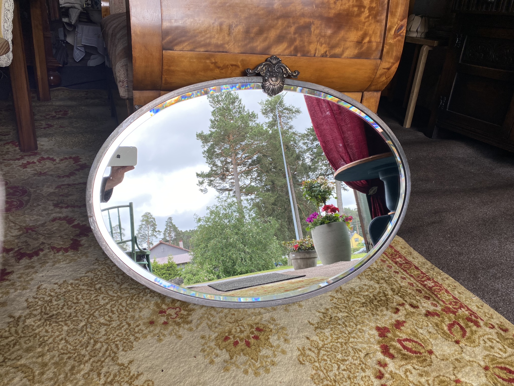 Võluv antiikne ovaalne peegel dekoratiivse krestiga – 20. sajandi algus