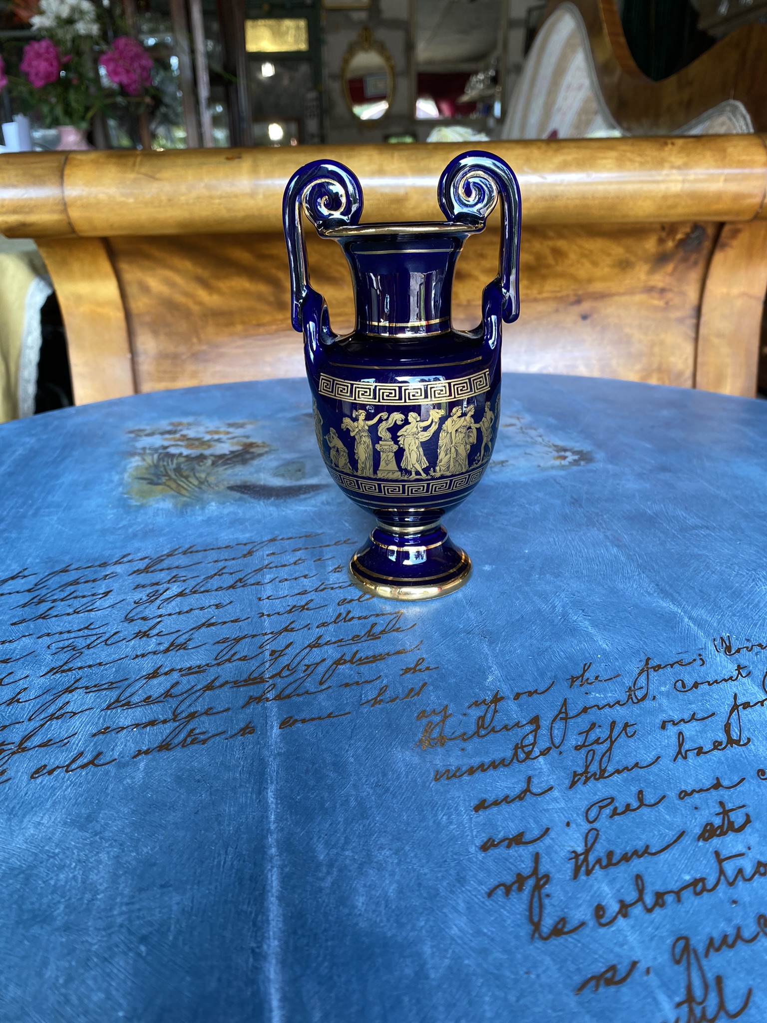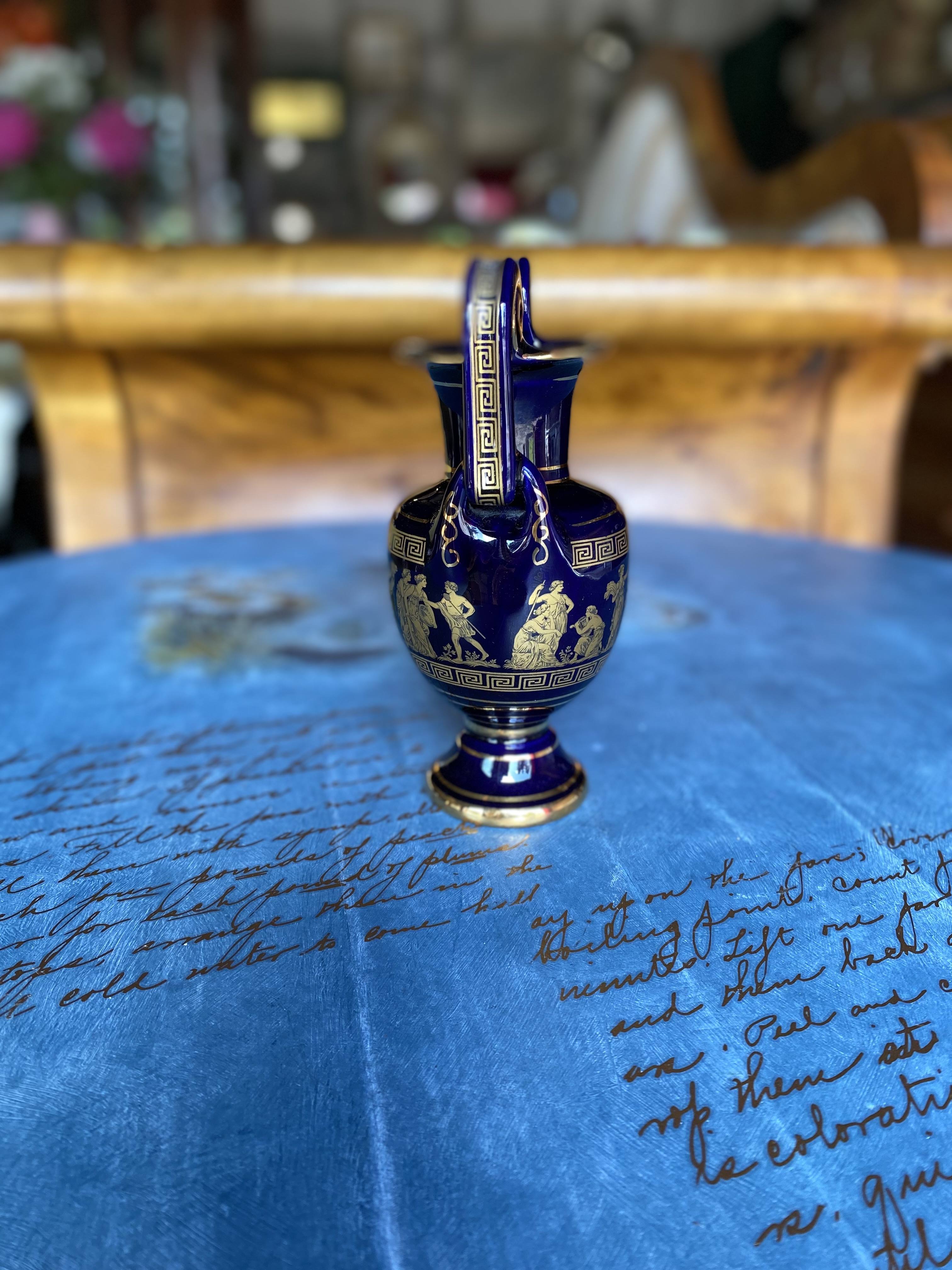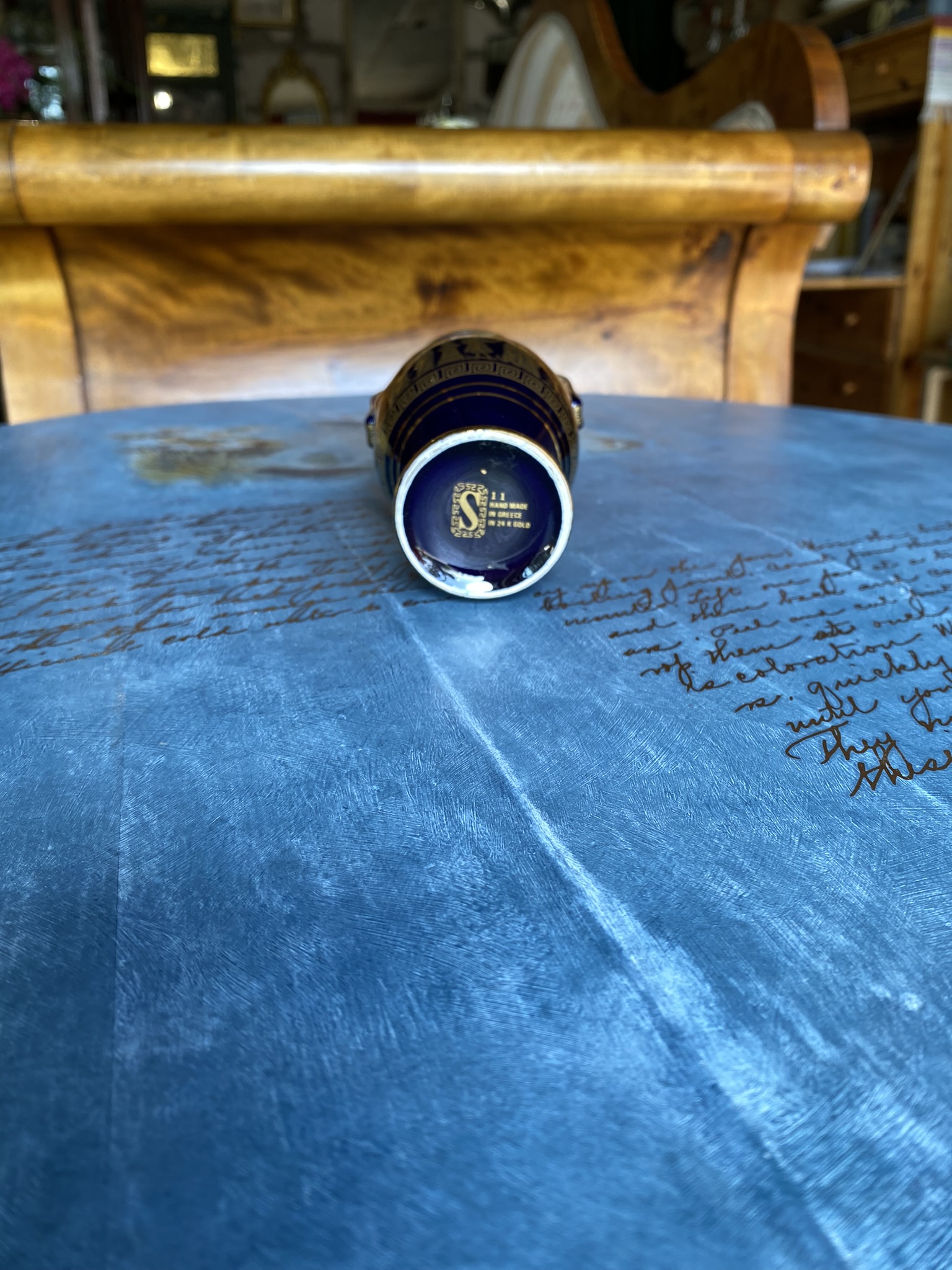 Kreeka käsitöö miniatuurne amforavaas – 24K kuld – Koobaltsinine