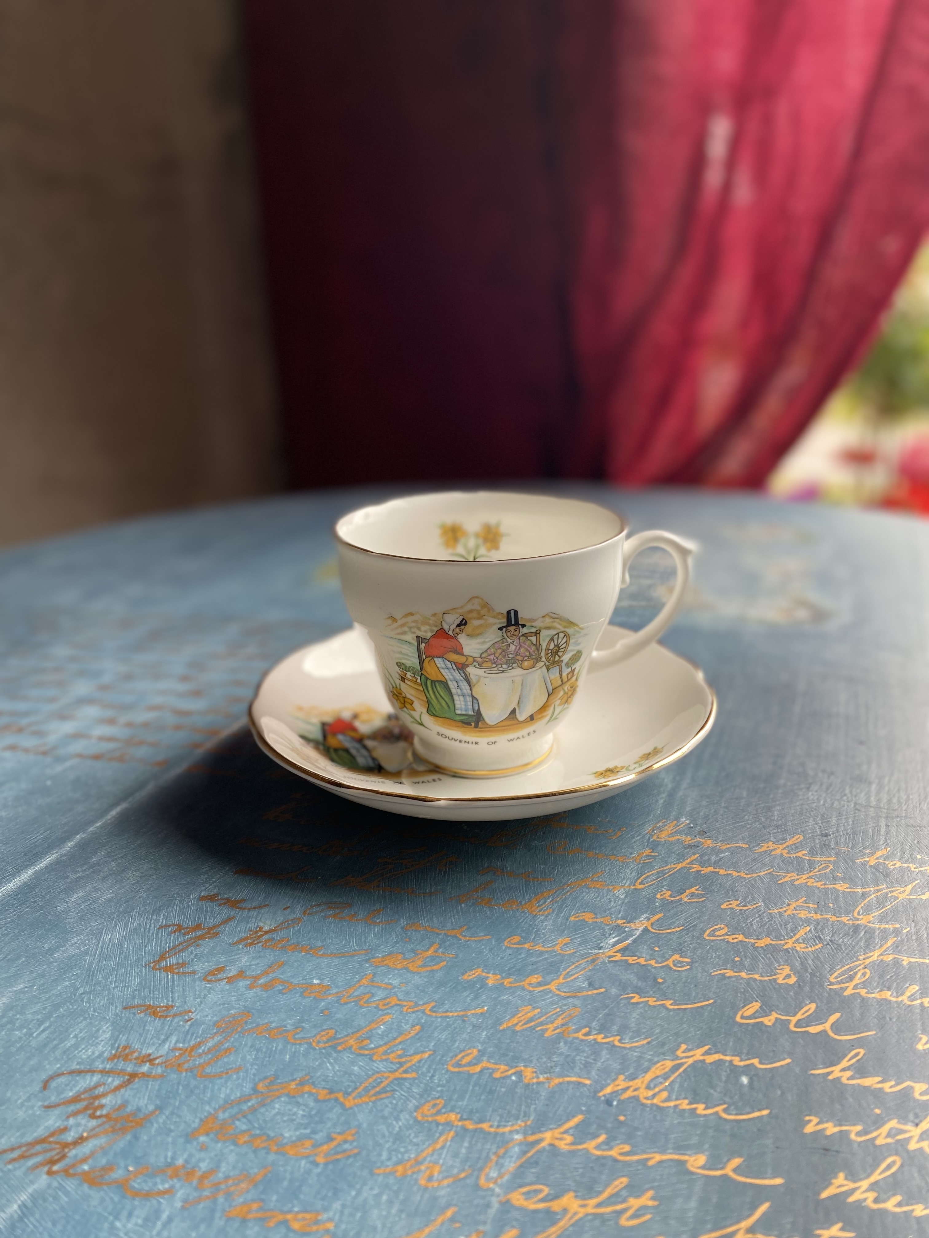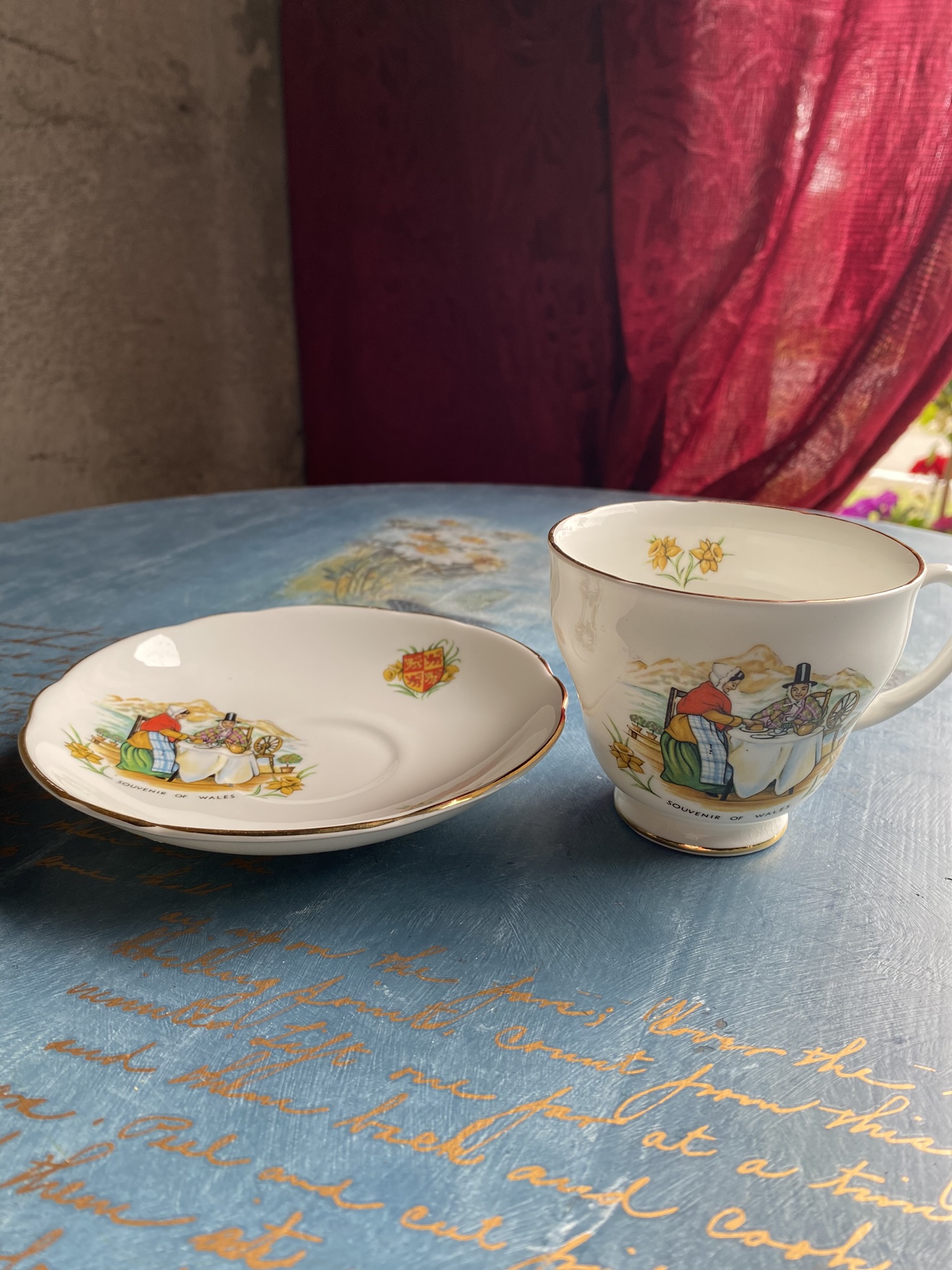Võluv Walesi Suveniir – Vintage teetass ja alustass