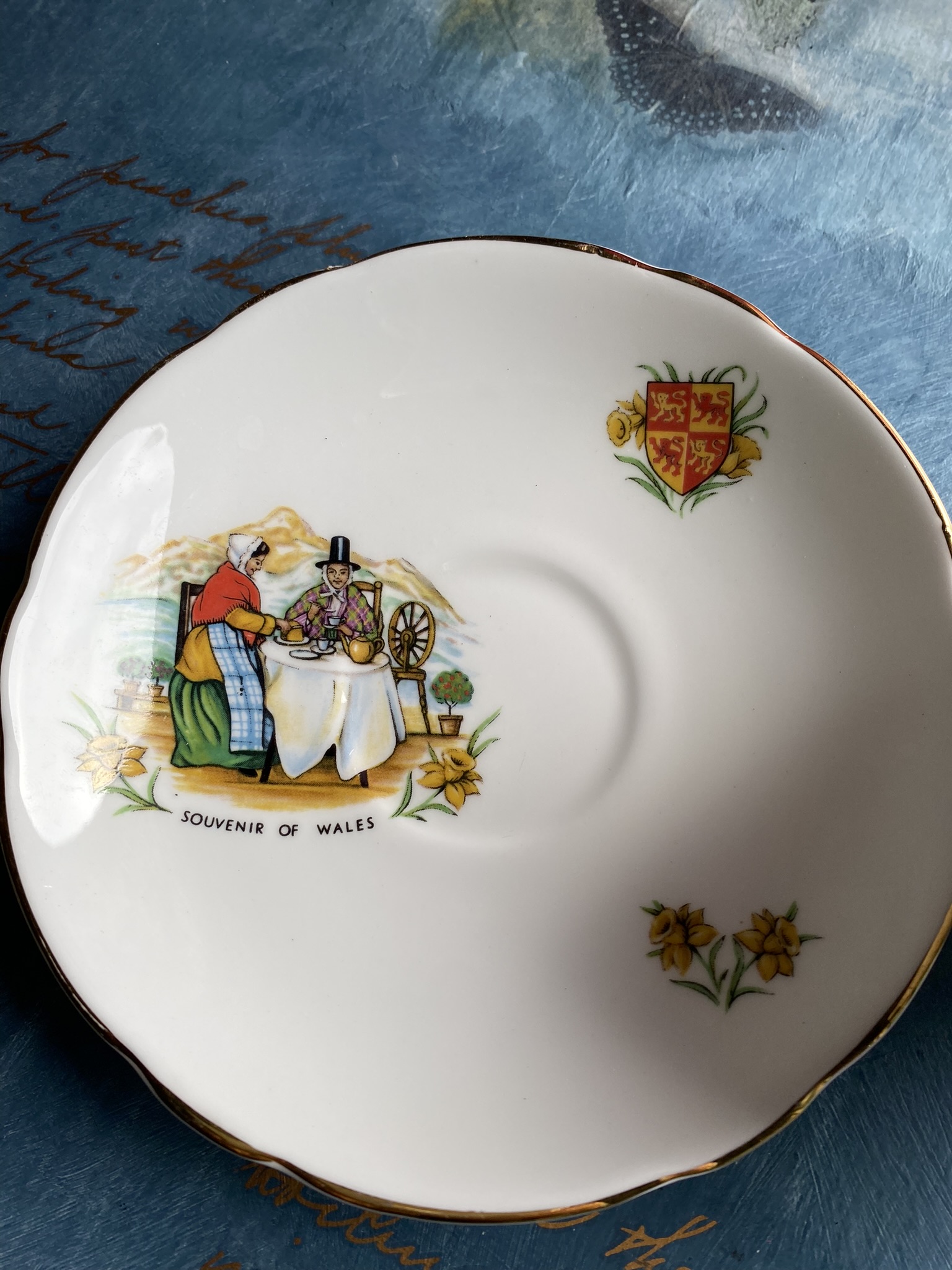 Võluv Walesi Suveniir – Vintage teetass ja alustass ![]()