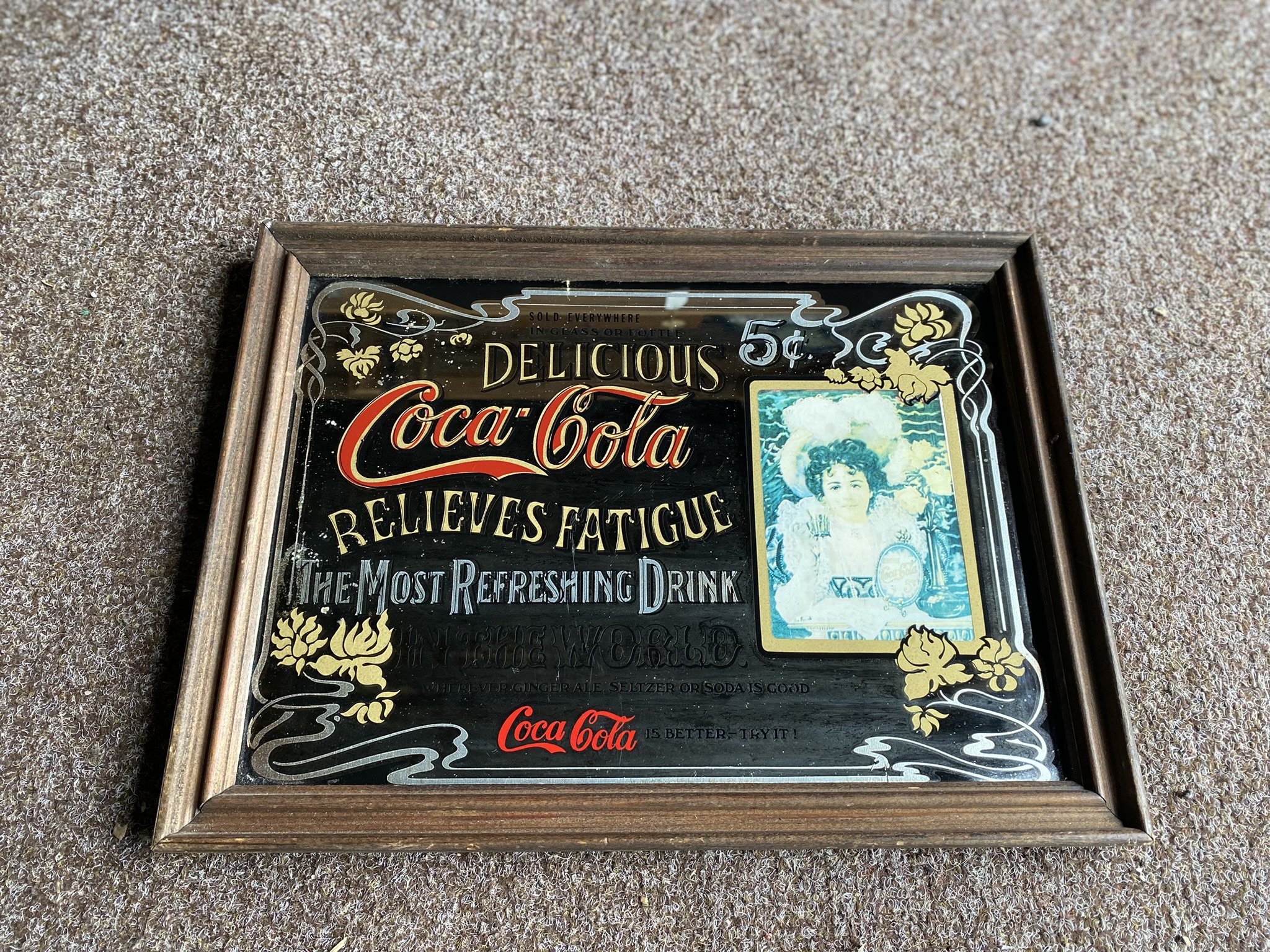 Vintage Coca-Cola reklaampeegel (raamitud)