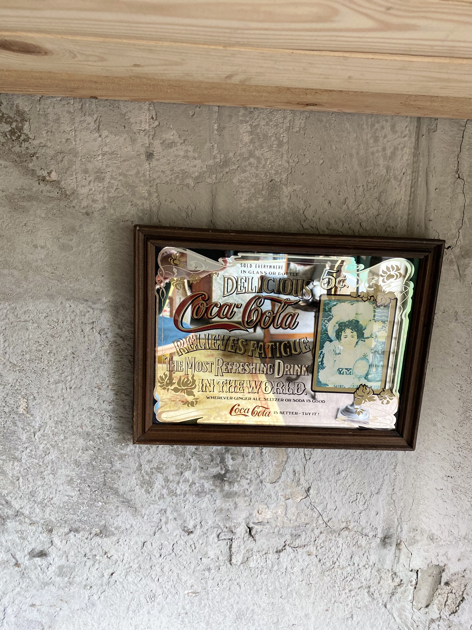 Raamitud vintage reklaampeegel Coca-Cola reklaamiga