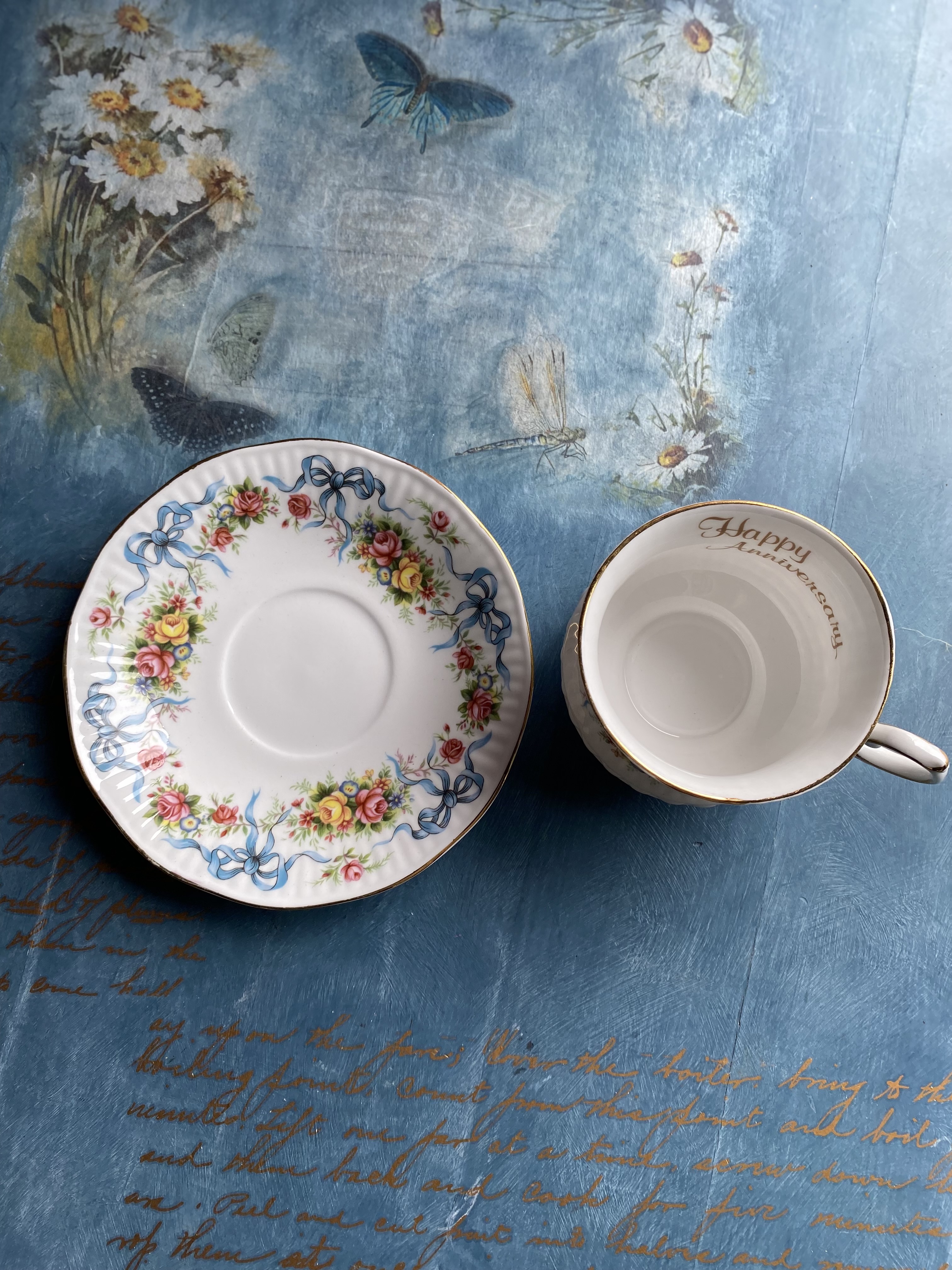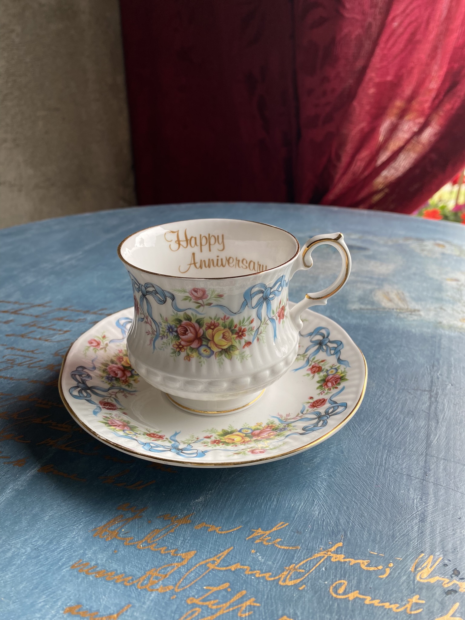 Vintage Royal Graftoni “Happy Anniversary” teetass ja alustass